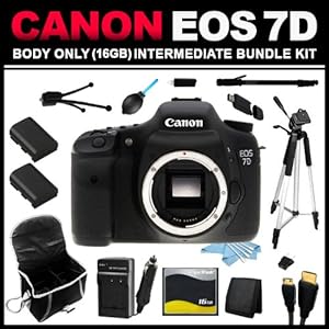 Canon EOS 7D 18 MP CMOS Digital SLR Camera with 3-Inch LCD (Body Only) (16GB Intermediate Bundle Kit) includes x2 Batteries, Charger, Case, Memory Card, Memory Card Wallet, HDMI Cable, Table Tripod, Full Size Tripod, Monopod, USB Card Reader, Dust Blower, Cleaning Kit - 3814B004 special discount